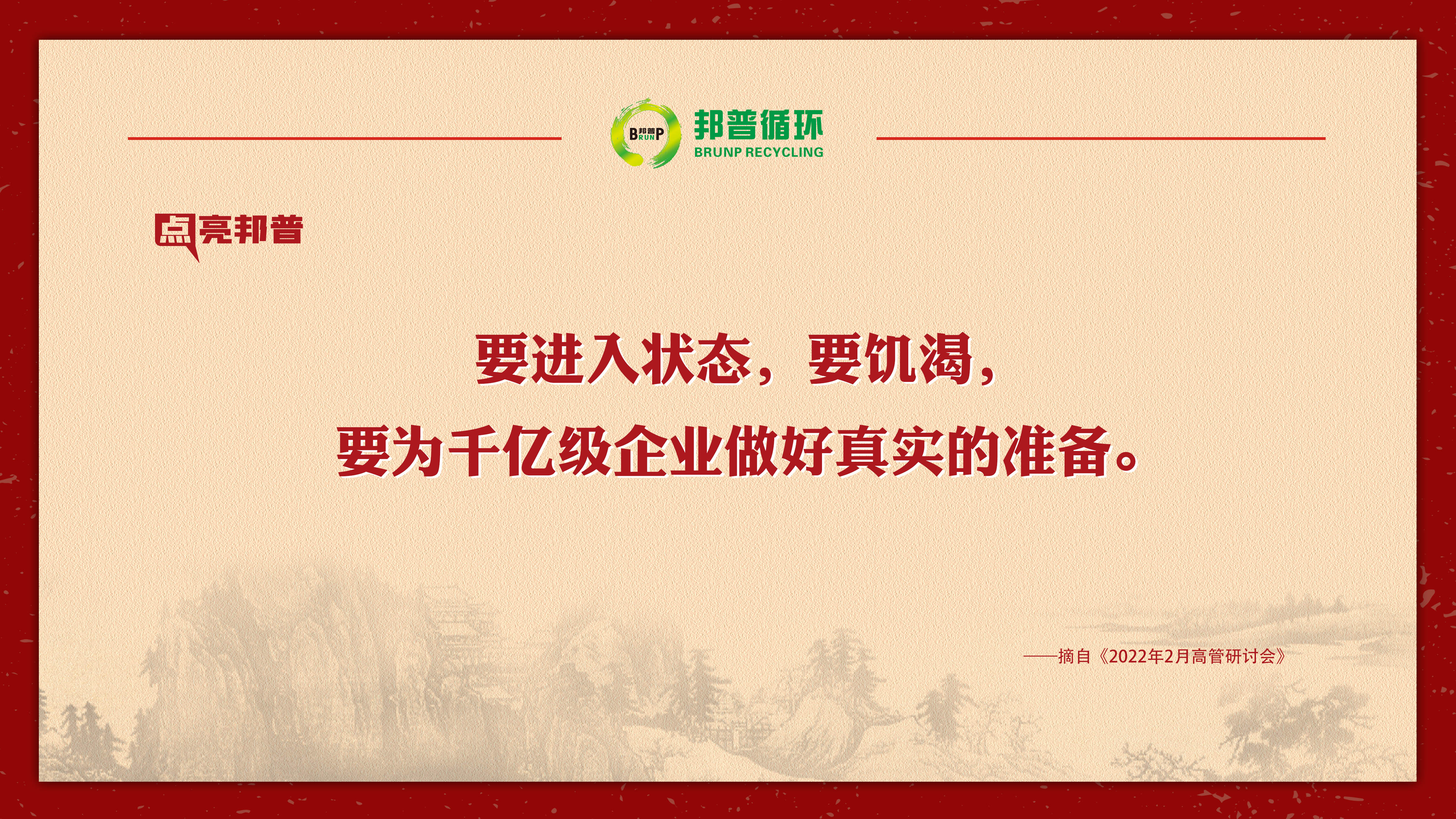 2022年2月,,6163银河官方网站循环高管钻研会上,,李长东总裁与高管一起分享优异企业的价值观,,旌旗鲜明地提出大企业一定要为社会做孝顺,,我们所有人都要调解成这样的状态,,为千亿级企业做好真实的准备!本期点亮6163银河官方网站,,和您一同品味。。。